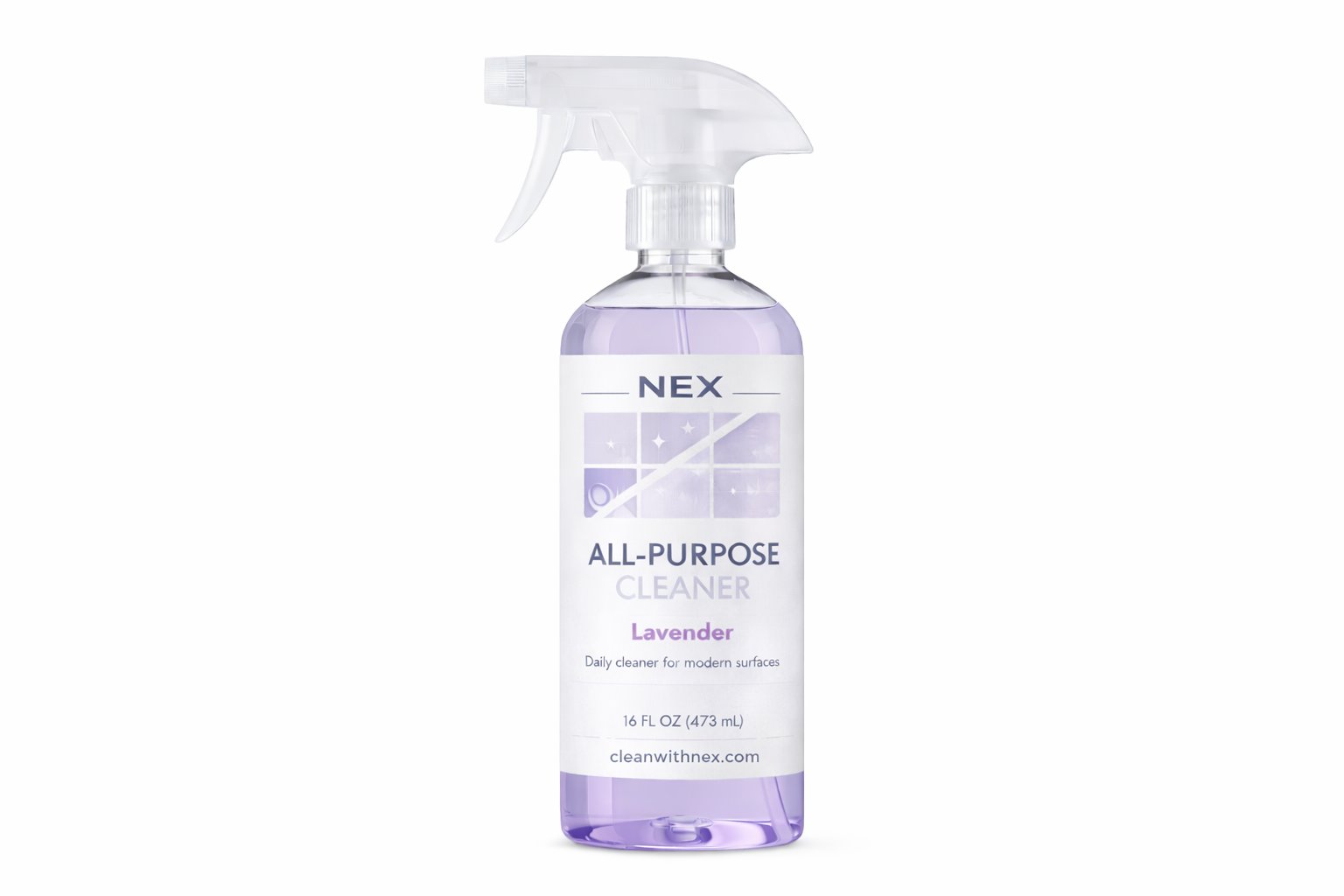 NEX All-Purpose Cleaner | Lavender is designed for everyday cleaning across the surfaces you use most. From kitchen counters to bathroom sinks and appliances, it removes grease, dust, and residue while leaving a light lavender scent behind.
